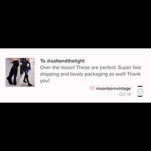 @riddlesperger Hi hi! I already accepted the other offer for the dress so shipping was added to that one ☺️ Since you already paid for shipping once I'm happy to do free shipping on the boots but I'll have to decline your offer first and send over a new one so please watch for it! That's very weird about not being able to follow me! Do you want to be added to my new arrivals list to be notified when new product comes in?