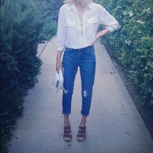 This is the perfect little black heel that makes a strappy statement without taking anything away from the rest of your outfit. Runs true to size.