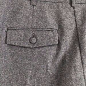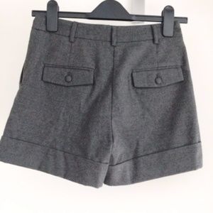 A soft, wool-like, dark grey short featuring front pleats, side pockets, back flap pockets, belt loops, center front zip and button closure. Lined pockets. *Spare buttons included. Perfect addition to a Fall wardrobe! New with tags, never worn! Smoke/pet-free home. Please message me questions prior to purchasing!