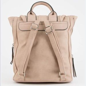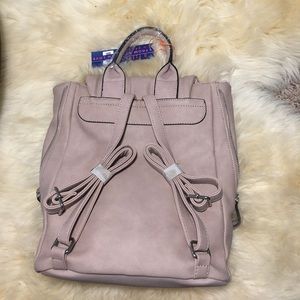 From Free People Line Violet Ray. Violet Ray Quilted Bowery backpack. Faux leather backpack. Zip quilted flap with a magnetic button closure. Zip main compartment. Inner zip. 2 open compartments. Outsize zip pocket. Adjustable shoulder straps. Approx dimensions: 10.5". x 11.5" 4". Imported Blush cream color