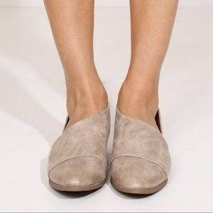 Stone color. Man made distressed leather with oil finish. 1 inch stacked heel. Wrap around design. Closed almond toe. Cushioned padded insole for comfort. Runs TRUE TO SIZE. Also available in TAUPE. No trades. Price is FIRM. One of of my 7.5s was worn ONCE by my model and has a slight scuff. Offer $35.
