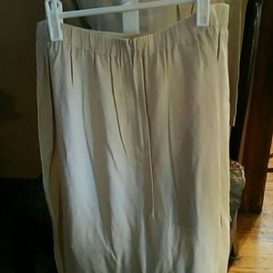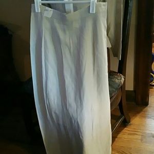 Beautiful cream colored suit. This was worn Once. Excellentcondition. There is a piece that buttons across the opening of the jacket. The skirt is longer has zipper in back with a little bit of elastic in the waist. There's also a kick pleat in the middle of the back of the skirt. Beautiful details Lightweight