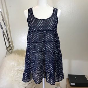 Mimi Chica see through polka dotted tiered tank top/ tunic/ dress. Navy blue with pink and white dots. See through. Can be worn as a dress or as a shirt. I wore this as a maternity top. Brand new condition. Size S.