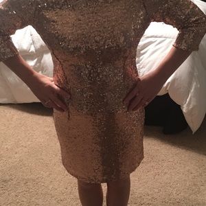 Rose gold sequin dress. Has thick lining. Worn once. Zips up the back. 3/4 sleeve and hits above the knee.
