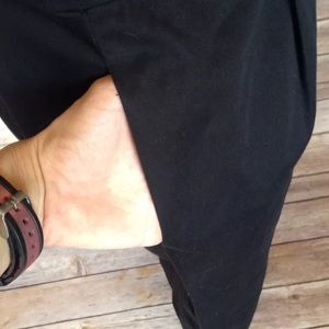 Pre-owned White House Black Market women's size 6 black sheath dress with pockets. Excellent used condition. No rips holes or stains. Zips up the back. 55% cotton 42% nylon 3% spandex. Great career work dress!