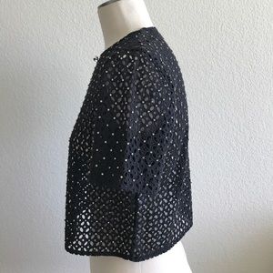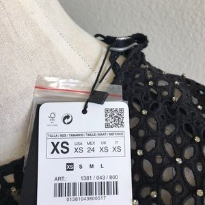 Rhinestone embellished eyelet crop top. Brand new with tags. Due to the very delicate design, some of the rhinestones aren't as secure as others. Also, a hole/rip as pictured near the collar. Comes with extra rhinestones.