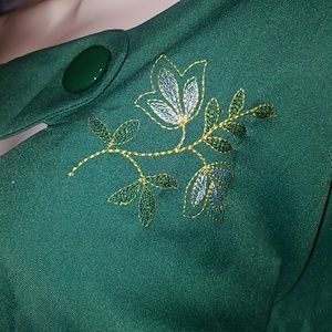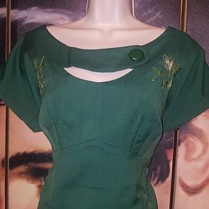 Tatyana Sierra Green 1950’s Pinup Pencil Dress w Peek-a-Boo Embroidery Neckline