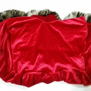 Gorgeous velvety red dress with leopard print trim. Sexy Mrs Claus dress. Sweetheart neckline. Elastic around the top to keep the dress in place. Size M/L.