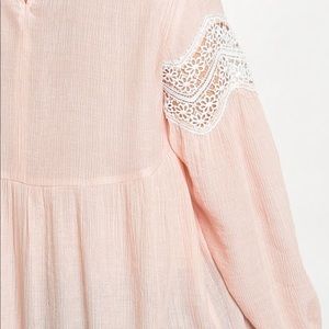 Long sleeve tunic; mock neckline and lace details. 50% COTTON 50% POLYESTER;