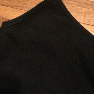 A plain black sweater (knit) material strappy crop top. Never worn but tags are removed.