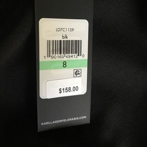 New Karl Lagerfeld Paris “little black dress” with perl mock neck and cuffs. From KARL LAGERFELD PARIS. Karl Lagerfeld is Chanel creative director, all clothing with his name are designed by the same house as Chanel, have the class and style. Dress is stretchy, true to size. Made in China. This dress features:
