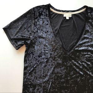 Crushed Velvet V Neck Boyfriend Tee - Black