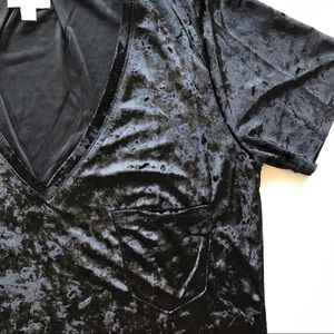 *Black color / Short sleeves / Relaxed boyfriend fit tee / V Neck / Small single front pocket / Crushed velvet
