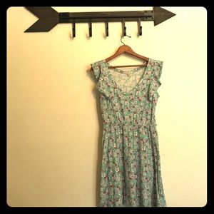 Spearmint, flowers and ruffled shoulders make this dress irresistible 😍 Heritage from F21; missing belt