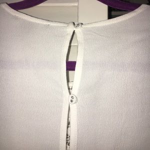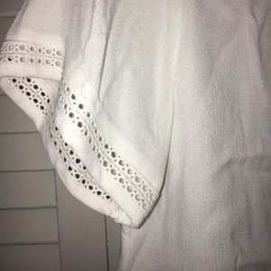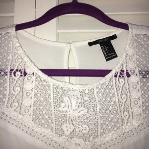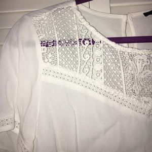 Kinda a crop top (depending on the length of your torso lol). White, lacy top. Buttons in back. Super cute and only worn like once.