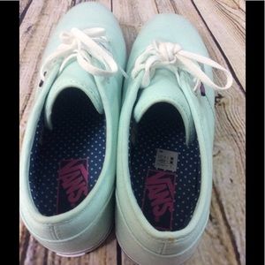 Vans mint green lace up shoes size US 9. Bought and worn about 2 times. Light stain on toe area and back of one heel.