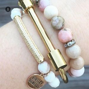 🆕 Kinsley Armelle GLITZ KHAKI STRETCH BRACELET. This Khaki Glitz Bracelet is an absolute stunner because of the rhinestone paved bar nestled between stone beads. Each rhinestone paved bar is plated in gold and will stand the test of time for your collection. We love to stack these with other bracelets to really bring it all together. Stretch Bracelet w/ Faceted Stone Beads