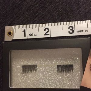 4 peices double magnetic lashes. Ask any questions you may have. Half lashes great for daily wear. Do not use mascara or shower in these and they can be worn repeatedly. Easy to apply and remove no glue is needed. Comes in case similar to photo.