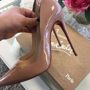 Christian Louboutin So Kate Patent pumps. Authentic. Comes with box and shoe bag. 120 patent nude size 39.5. I wear a 8 and these fit perfectly! Please see all pics for wear. Worn once. Painted bottoms when changed the heel cap. Red bottoms. Bloody Shoes