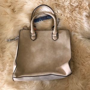 from free people line violet ray in taupeViolet Ray Whitney tote bag. Faux leather bag. Main zip pocket with an inner zip pocket and open organization compartments. Two outer accessory pockets with whip stitch detailing. Removable/adjustable shoulder strap. Approx dimensions: 12" x 10.25" x 6". Imported