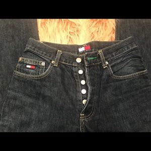 Vintage high waisted Tommy Hilfiger women's Jeans spell out patch on back