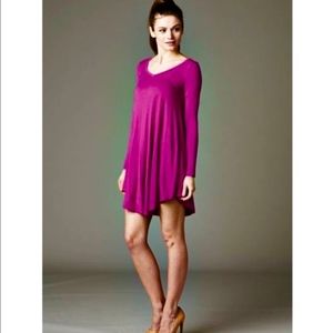 Stunning Magenta V Neck Longsleeve Flared Tunic Boho Dress.