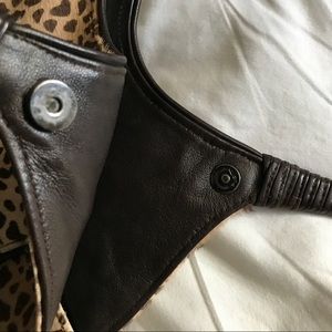 Beautiful Philip Treacy cowhide Bag. Cowhide handles are wrapped in brown leather. This bag is a flat style. Bag is cut from one piece of cowhide. Sueded Beige interior with a few minor signs of wear. 9inch handle drop. 6.5 inches across the handles. 16 inches across the widest part of the bag. 6.5 inches in depth. Shallow inner pocket at 4 inches deep. Bag has been stored in cedar lined trunk. Made in Italy