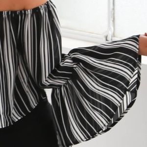 Sassy statement sleeve are trending. Dramatic flutter, flared trumpet bell sleeve. Very lightweight, tissue weight, very slightly cropped top. Has slight nubby feel. Unbranded. Fits XXS XS or S.