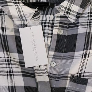 Only M left! ◽️A pretty spin on the classic plaid button down blouse - PERFECT for Fall 🌻🌻🌻Black/gray/white blouse in a sleek flowy material, tie front, hi lo hem. High quality, luxurious, premium label. A classic blouse that never goes out of style. 100% rayon. I am modeling S. S chest 20.5", M 21", L 21.5". Wearing with my Rosé Jeans.