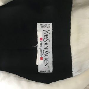 Amazing vintage YVES SAINT LAURENT ( YSL ) Rive Gauche cropped black bolero blazer! Chic slim fit that looks wonderful on! Fully lined. Perfect with jeans, shorts, trousers, a skirt, or over a dress. In great condition. Made in France. Off white silk collar and black polyester. No tag for size but fits like an 8. Length 17. Sleeves 21. Sh to sh 16. Built in shoulder pads.