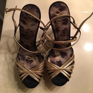 Gold and black suede platform heels size 6.5 used only one time 5 inch heel