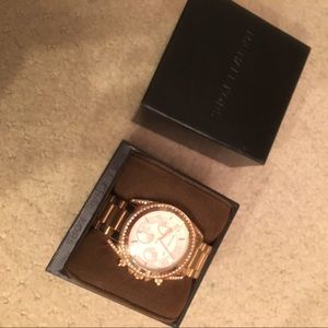 BEAUTIFUL watch! The classic shape keeps it feeling timeless, letting its modern pavé accents stand out. Completely embellished around the face and bezel, it’s a dazzling piece that will imbue every look with a sense of glamour. Suddenly, every day calls for sparkle. I've only worn this watch a few time. It practically looks brand new. Someone should have this that wears it instead of collecting dust with me!