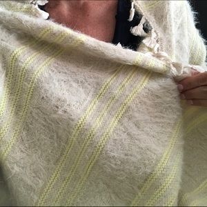 Stunning eyelash sweater in a cardigan cut. Beautiful detail cream with light yellow stripes! Tassel fringe add for a boho vibe. Perfect piece this season dressed up or down! 100% Cotton Garment Care: Hand wash cold. Sizes Small Medium Large Runs True to Size.