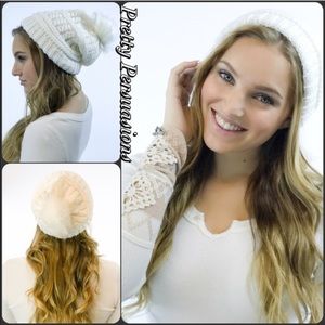 NWT Red Pom Pom Slouchy Beanie Hat