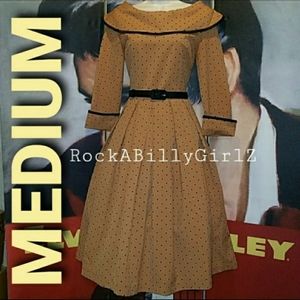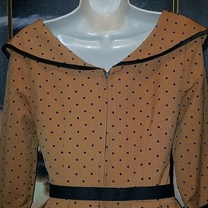 Tatyana Iced Coffee 1940's Mocha Polka Dot 3/4 Sleeve Military Pinup Swing Dress