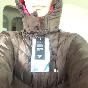 This jacket is great for cold weather activity. Rab's Ascent down jacket delivers reliable warmth and weather protection. NEW WITH TAG. First picture color more like real color on this coat.