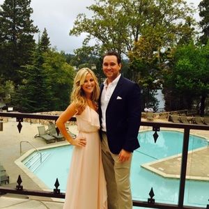 Color blush, size small, excellent condition, worn once for wedding, bottom hemmed, I am 5'3