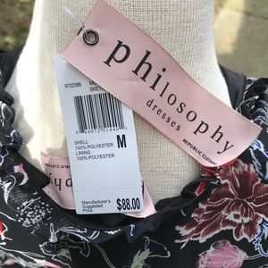 NWT Philosophy Boho - Black, floral and bell sleeve dress!! Measures approx: 20.5” (pit to pit), 34.5” shoulder to front hem, 37” shoulder to back hem, 23” shoulder edge to bottom sleeve. 100% polyester both sheath dress and lining. Offers are encouraged! Let’s make a deal on this gorgeous and flattering dress!