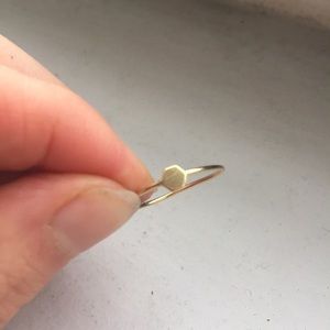14k yellow gold small ring with tiny hexagon by Mociun. Great for stacking! Ring is in good used condition with some scratches on the surface, one noticeable and pictured above. Hand made in NYC