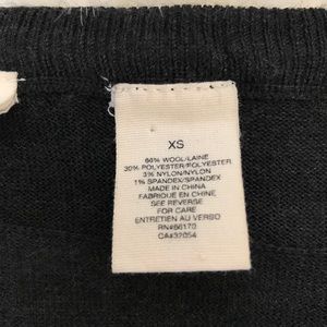 EUC. Anthropologie Moth Sweater, Sz XS. Ruffle details across front and back. Very dark gray, almost black. Lightweight. Approx. 24” sleeve, 15” armpit to armpit. Materials in pic.