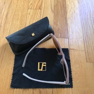 This Linda Farrow Luxe 393 Acetate & Snakeskin oval frame is very stylish. Saddle nose bridge. Metal accents at frame front and temples. Snakeskin stems. UV protection. Lens Width 56mm Bridge 25.5mm Temple length 140mm Color is dusty rose.