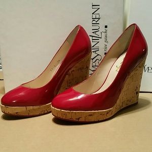 YSL Yves Saint Laurent Lili 80 red berry cork wedges, barely worn in immaculate condition. Size 36. *Authentic* These retail brand new for $495, but could be yours today for much less. =) Comes with the Box but no bag, simply beautiful.