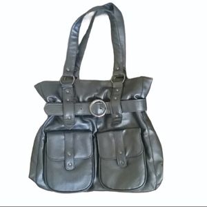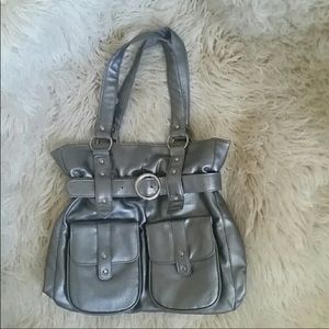 NWOT. This has never been carried. It is a large purse and can hold everything but the kitchen sink! Has a inside pocket and inside zipper for accessories. 2 additional pockets on the outside to carry a cell phone or whatever you may need for easy access. All magnetic closures.