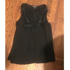 Selling a NWOT Express Black fringe tank top. It is so cute and is perfect for a night out or even a day in the office. The fringe adds the perfect amount of flair.
