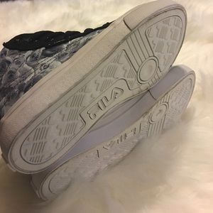 These cute girls shoes are too cute! They have grey and white roses on the sides and black on the front ! They are brand New without tags or box. (Please see pics for the sole)Thank you for your interest!