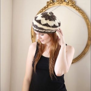 Also on Etsy plz check availability with me before purchase. Beautiful knit vintage wool hat/ beanie perfect for winter or any time! Made from a thick soft wool. Can be worn different ways depending on your style. Brown and off white or ivory in color.