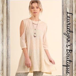 Gorgeous and cozy 3/4 Sleeve Cutout Sleeve Tunic with Back Keyhole