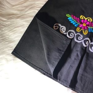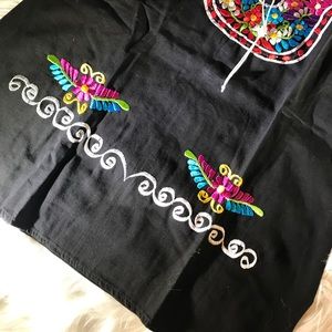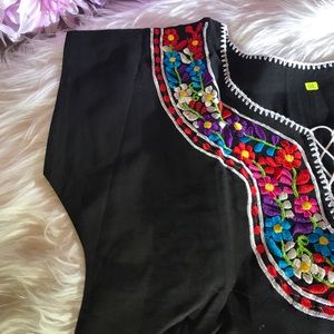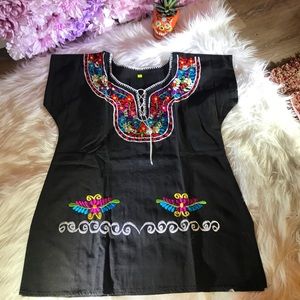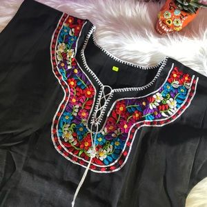 Brand New. HandMade. No Tags. Beautiful Mexican Artisan Woman’s Top. Made In Mexico 🇲🇽. Beautiful Black With Bold Multicolored Embroidery.