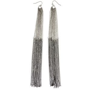 Best Seller!!! Black and silver shoulder duster chain drape earrings, perfect for New Year's eve in that little black dress