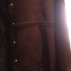 Suede & faux fur! Amazing aviator collar. Pockets. Never been worn! Dark choco brown.